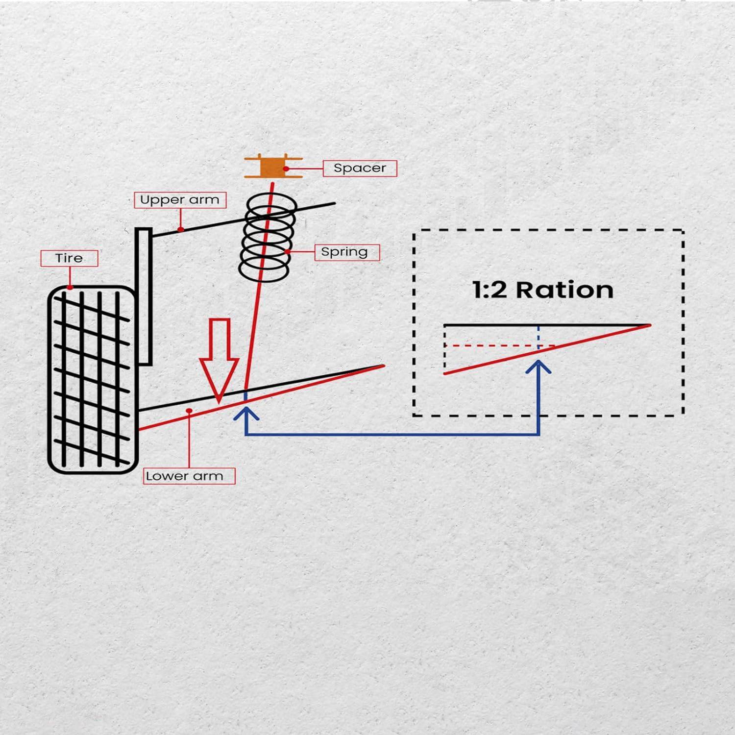 [Increase Ground Clearance] Leveling lift kit increases ground clearance to for extra room to accommodate larger tires and enhance off-road performance
