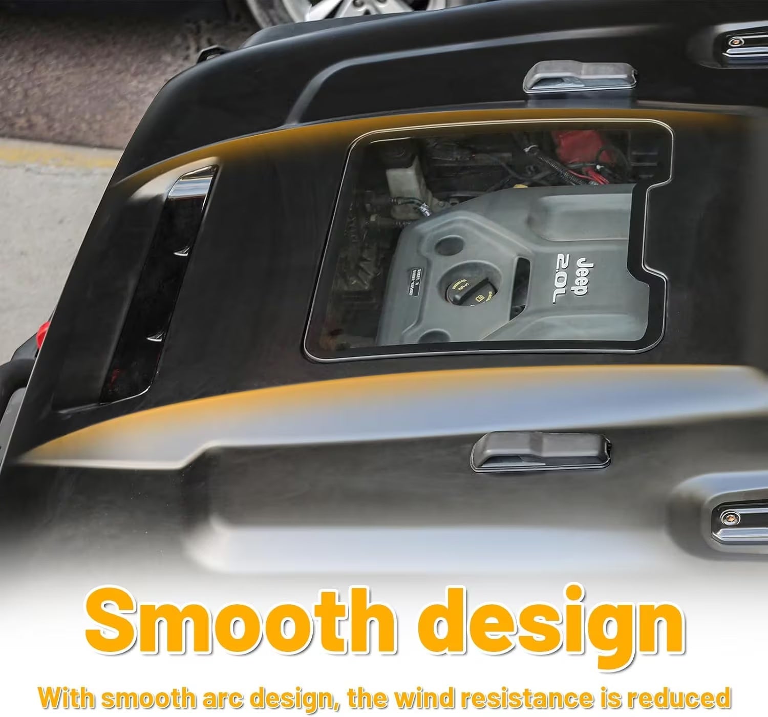 The spacecraft-style hood offers a personalized upgrade for your JL&JT. It allows your vehicle to stand out with a unique style and taste, attracting more attention wherever you go.