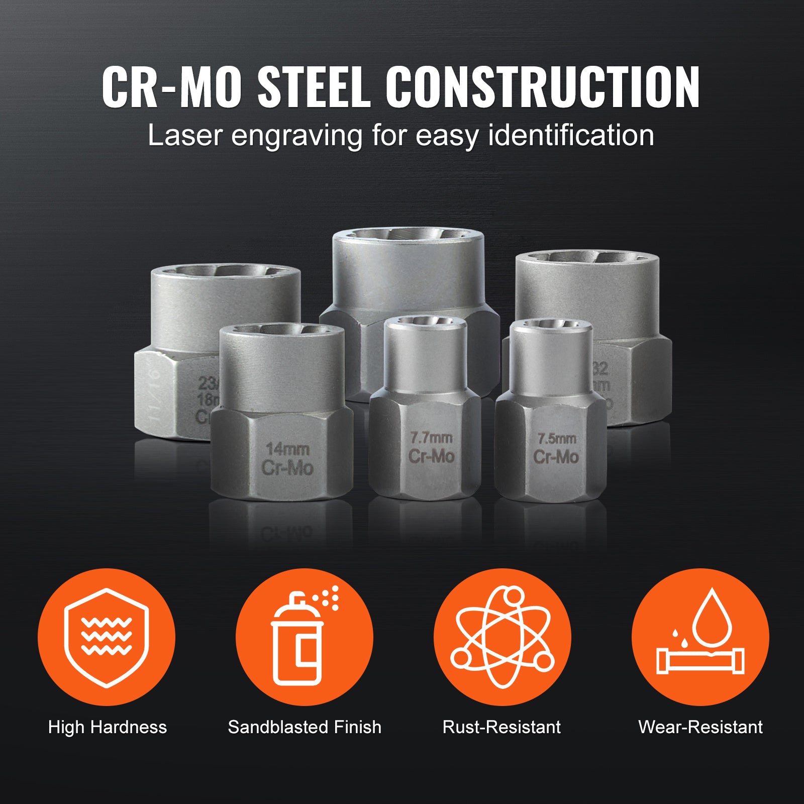 VEVOR Bolt Extractor Set, 29-Piece Bolt And Nut Remover Set, 6mm To 10mm, , CR-MO Steel Extraction Socket Set With Storage Case, For Removing Damaged Rusted Bolts, Nuts And Screws